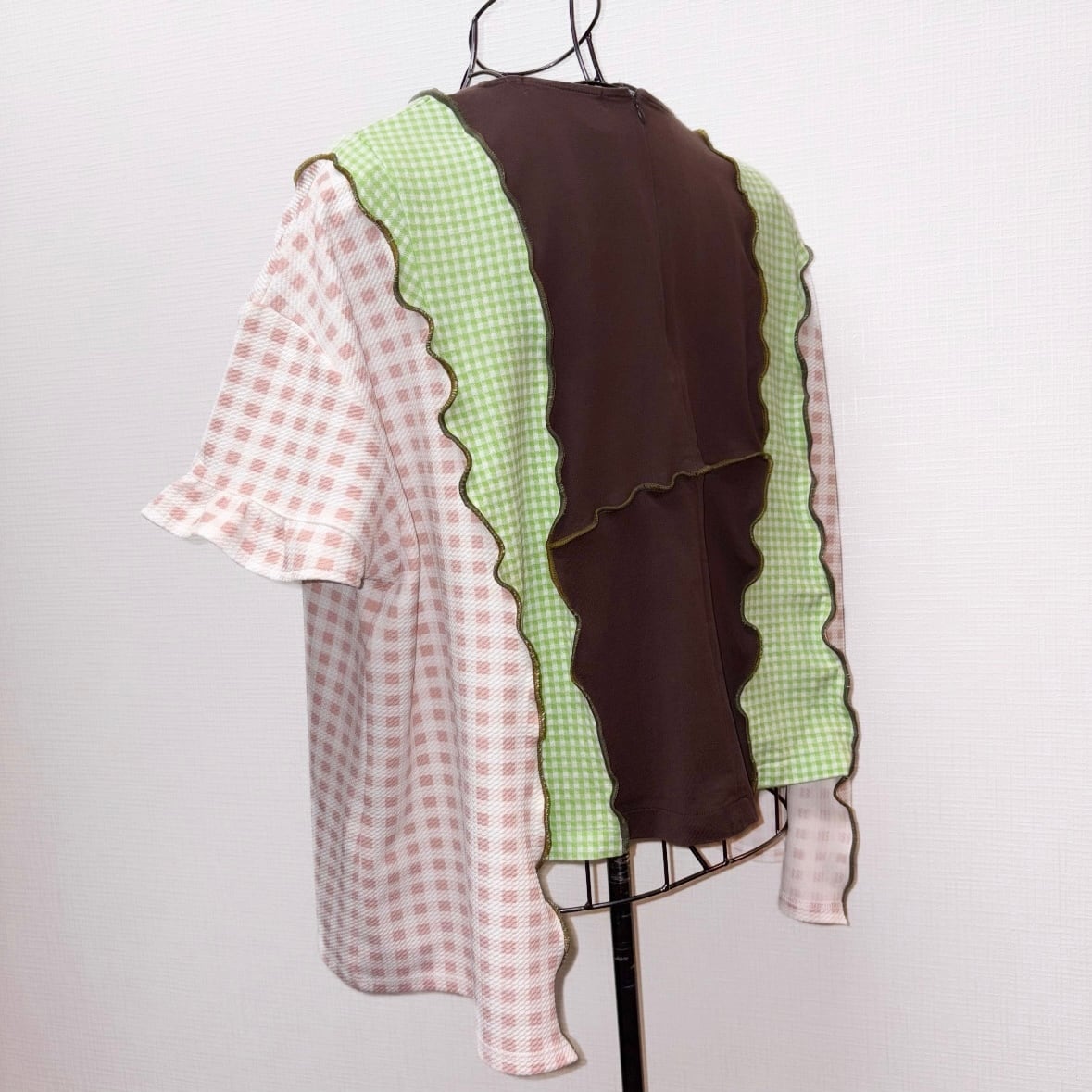 チェック✖️チェックフリルトップ