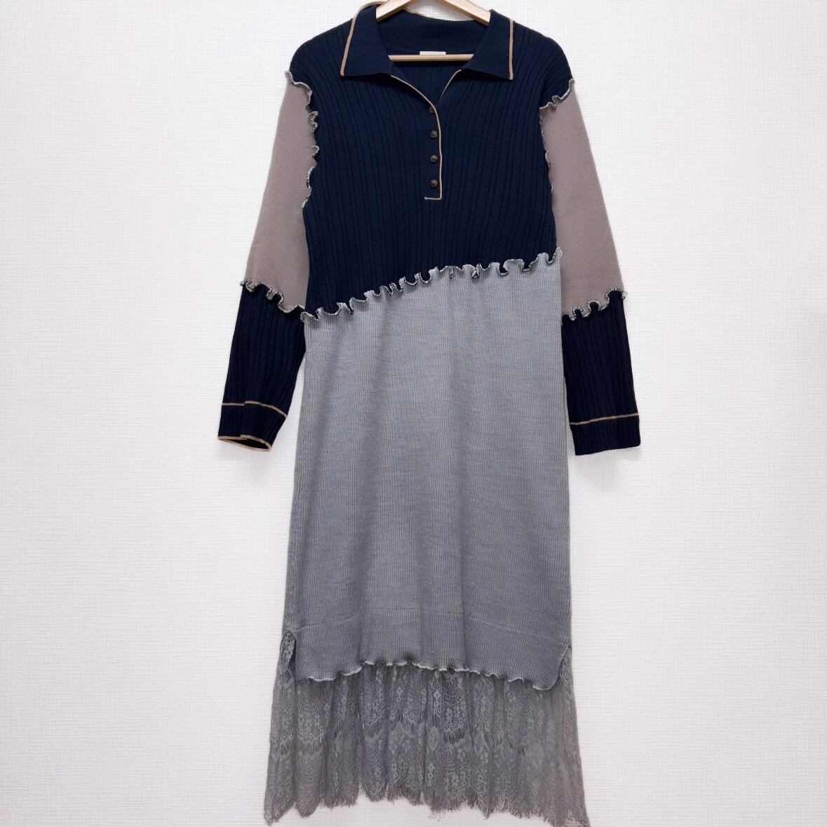 襟付きニットワンピース